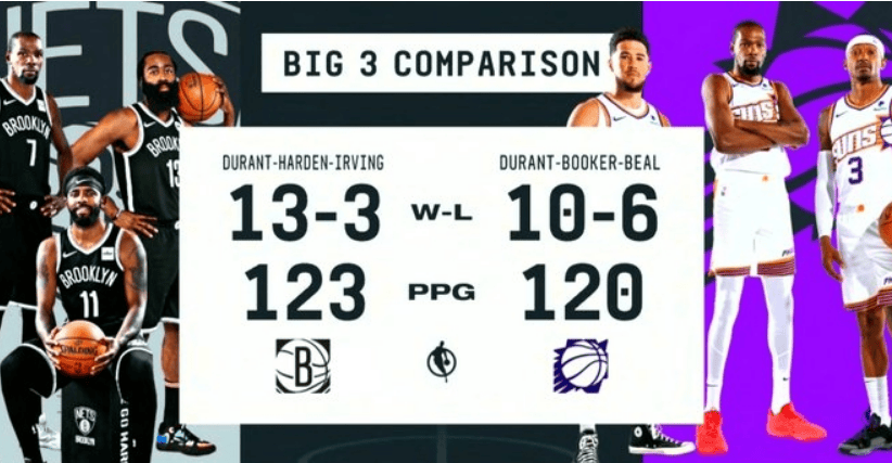 凯文-杜兰特重返篮网主场太阳三巨头超越篮网迎战记录