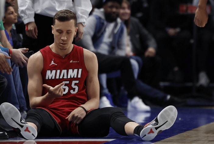 热火邓肯-罗宾逊因背部不适提前退场76人比赛中取得领先