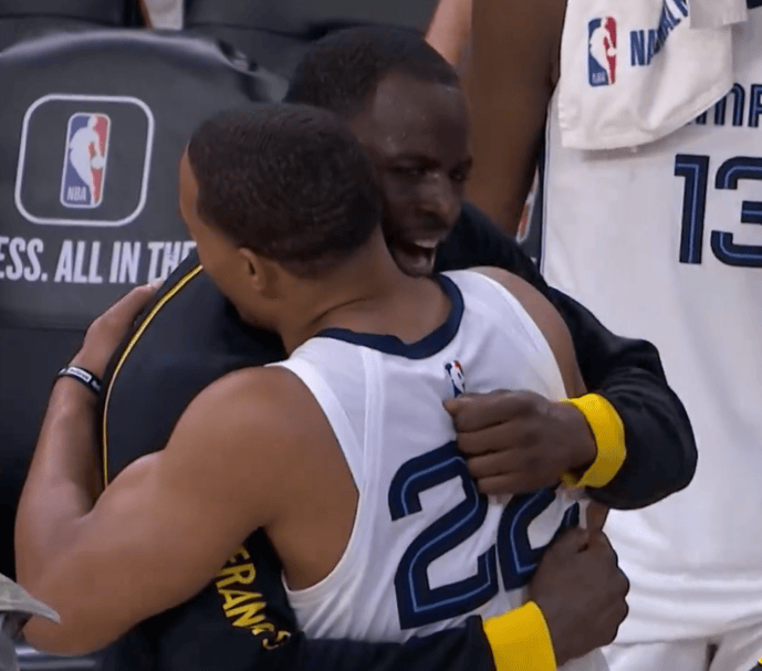 比赛期间,两队发生了一场激烈的冲突。在第二节比赛中,格林和贝恩之间发生了争吵和推搡,随后甚至导致灰熊主教练不幸被带倒。 在冲突发生后,裁判通过回看录像后判定,格林和贝恩各自犯规一次,被各自给予技术犯规。在比赛结束后,德雷蒙德-格林和贝恩用拥抱来结束了这场冲突,向球迷们传递了友好交流的信息。