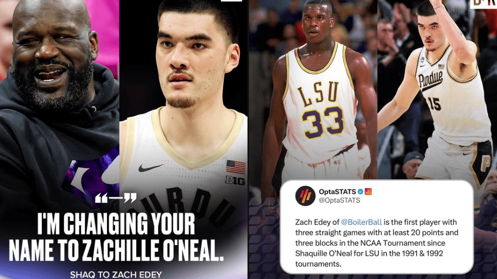 普渡大学的中锋扎克-伊迪在疯狂三月锦标赛中展现了出色的技术和统治力,引起了媒体和球迷们的广泛关注。他不仅连续三场打出20+得分,而且还多次出色地完成了3+盖帽,成为大学篮球历史上第一位实现此壮举的球员。 扎克-伊迪的出色表现引起了前NBA巨星沙奎尔-奥尼尔的注意。奥尼尔还开玩笑地说:“我要给伊迪起个新名字——扎克尔-奥尼尔。”