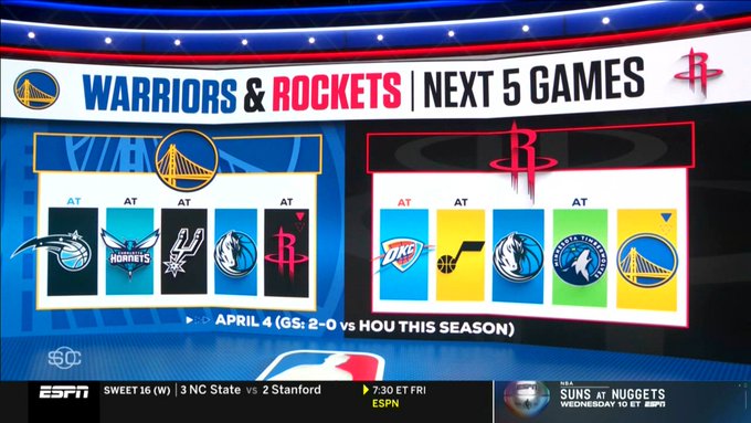 他们在接下来的比赛中将面对雷霆、爵士、独行侠和森林狼。这几支球队都是实力不俗的对手,火箭需要全队齐心协力,展现出强大的实力和战斗力,才能在这段时间里获得更多的胜利。 接下来的比赛对于两支球队来说都非常关键,尤其是4月5日火箭和勇士的直接对话。这场比赛将极大地影响双方在西部排名上的位置,也将是一场备受关注的焦点战役。