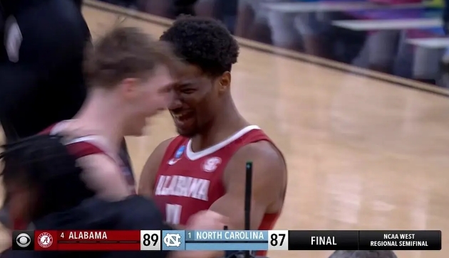 比赛结束时,阿拉巴马以89-87击败北卡,送走了西区头号种子。