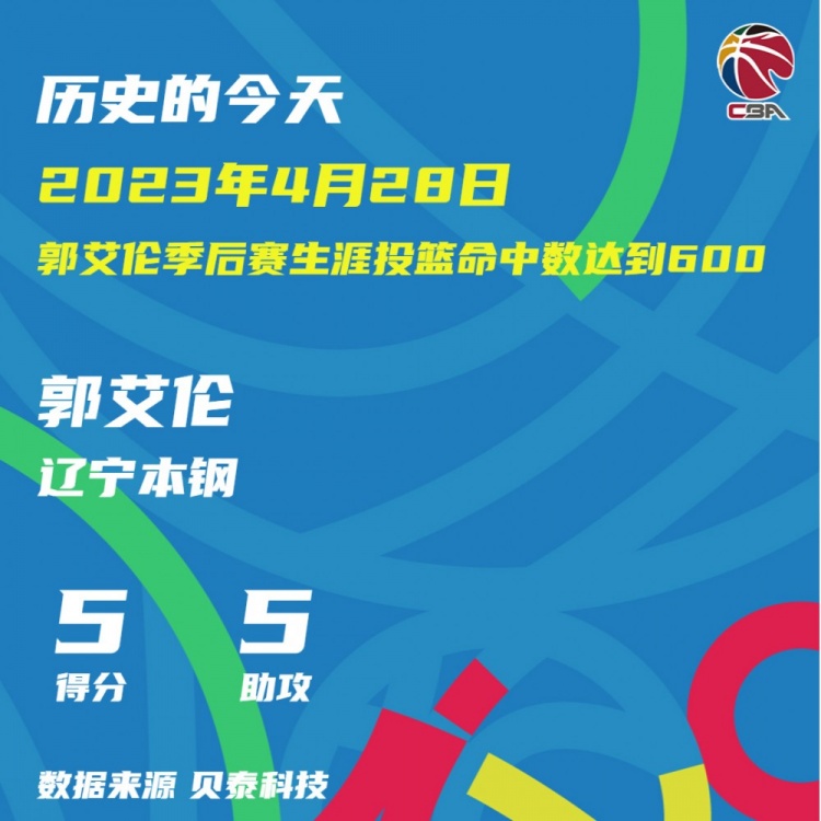 上个赛季,辽宁沈阳三生飞豹篮球俱乐部球员郭艾伦就实现了个人季后赛命中600球的壮举。 2023年4月28日,2022-2023赛季CBA联赛季后赛半决赛第2场,辽宁本钢94-99浙江东阳光,该轮系列赛总比分变为1-1平。郭艾伦在这场比赛中出场时间不满15分钟就因伤退场,但他在有限的时间内表现出色,5投2中得到5分1篮板5助攻1抢断。