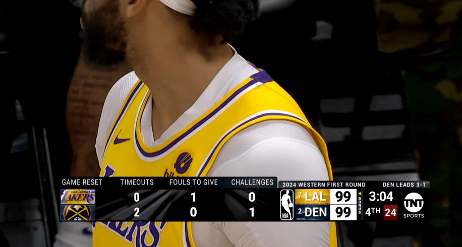 比赛中,湖人队在最后三分钟不得不处于无暂停状态,而掘金队则聪明地保存了两个暂停,并在最后时刻的绝杀中取得了胜利。 比赛进行到最后的3分37秒时,湖人队使用了倒数第二个暂停,希望通过调整战术来反击掘金队。这一举措并没有取得太大效果,仅过了33秒,湖人队又用掉了最后一个暂停,这次是为了挑战戴维斯犯规。最终湖人队在最后三分钟的关键时间内没有任何暂停可用。