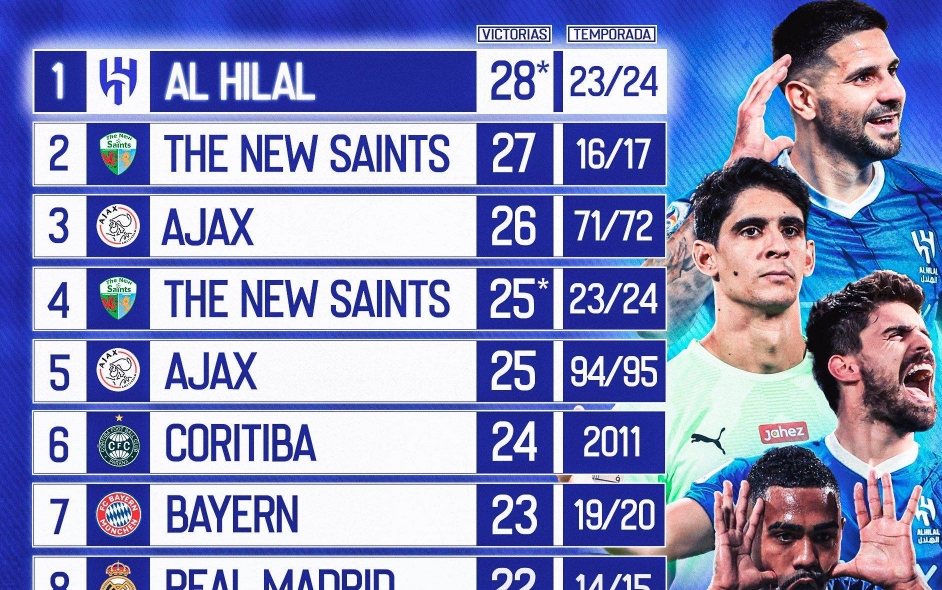 利雅得新月已经凭借27连胜追平了新圣徒在16/17赛季创造的足坛连胜纪录。本场再度获胜后,球队得以独享足坛最长连胜纪录的荣誉。 这场比赛是亚冠1/4决赛次回合,在上一轮的首回合比赛中,利雅得新月曾以3-1战胜吉达联合。本轮次回合的比赛中,利雅得新月再度展现了出色的实力,以2-0的比分击败对手。他们在整个比赛中控制了进程,展现出了团队的默契与配合,最终稳固了胜局。
