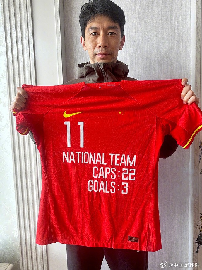 来源:直播82024-04-29 15:06:36中国足球队官方消息,近日中国男足国家队向曾效力于国家队的前锋朱挺赠送了一件纪念球衣。