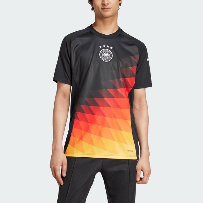 德国队欧洲杯赛前训练服曝光:黑红金三色渐变设计