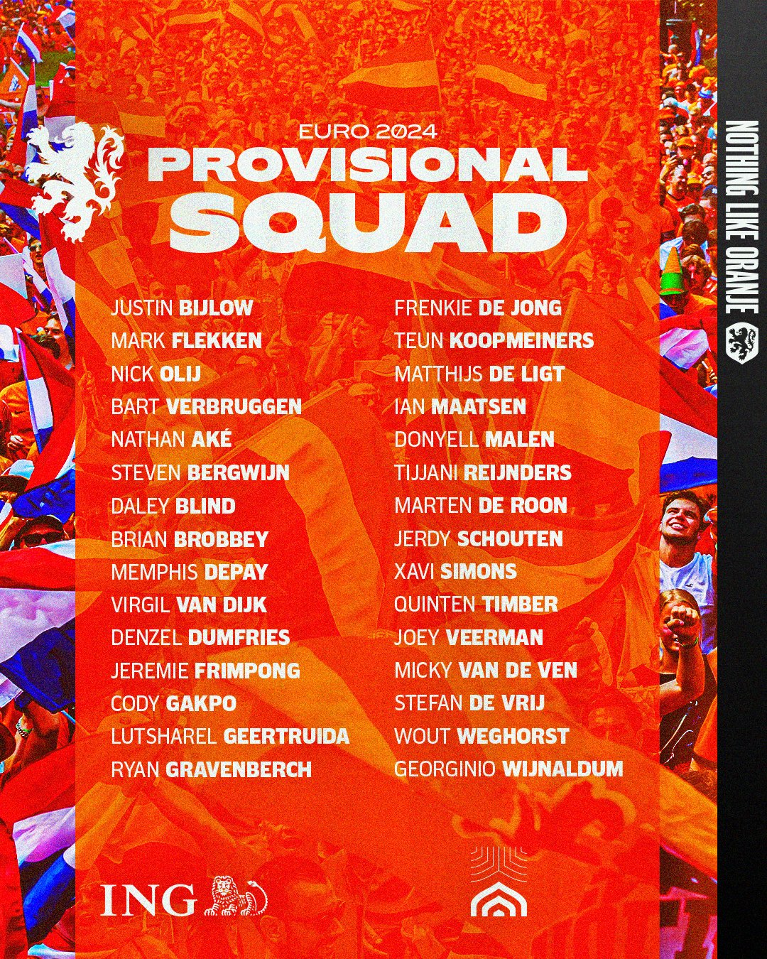 荷兰队欧洲杯初选名单出炉:后卫线豪华阵容引燃期待