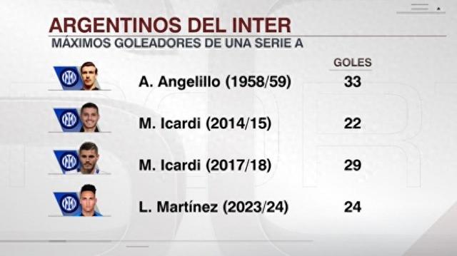国际米兰队史上曾有两名阿根廷球员曾获得意甲金靴荣誉,分别是安杰利洛和伊卡尔迪。安杰利洛在1958-1959赛季斩获33球,成为国际米兰队史上的第一位意甲金靴得主。而伊卡尔迪则在2014-2015赛季和2017-2018赛季两度斩获该荣誉,分别贡献22球和29球。
