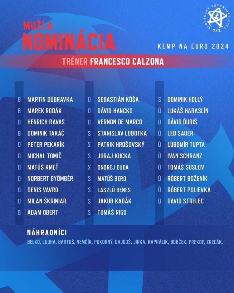 斯洛伐克国家足球队公布欧洲杯初选名单