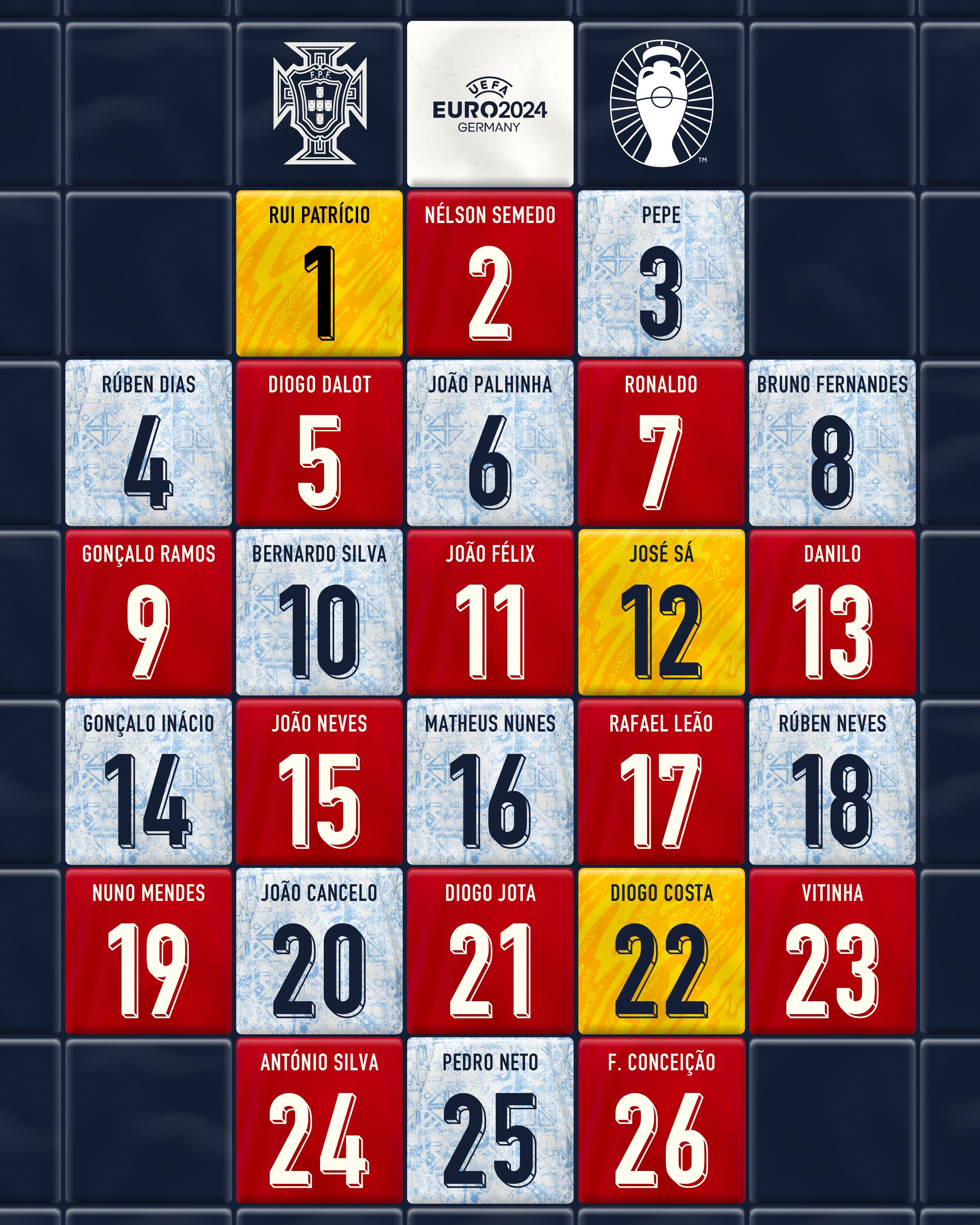 葡萄牙队的23人名单中包括3名门将、9名后卫、6名中场和5名前锋。这支实力强大的阵容将在F组与捷克、土耳其和格鲁吉亚展开激烈的争夺。